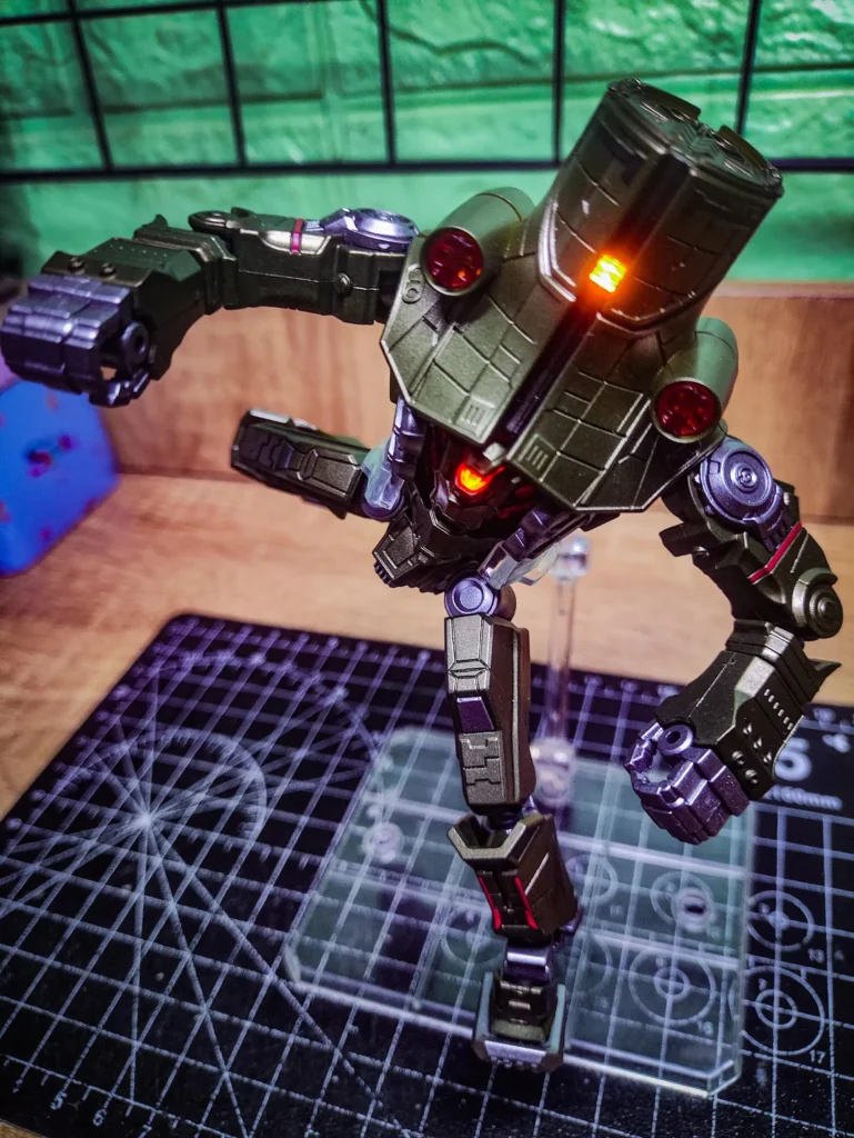 - Dual LED Lighting: Head + chest reactor lights up (includes 2 batteries per Jaeger) – absolutely stunning in the dark.