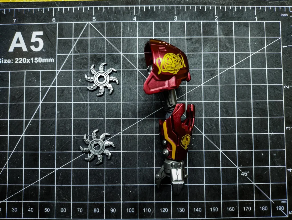 | Crimson Typhoon | Three arms with 2× fully rotating plasma saw blades |